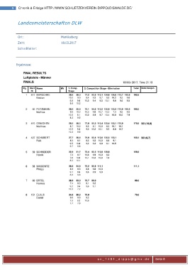 8 Chronik & Erfolge HTTP://WWW.SCHUETZENVEREIN-DIPPOLDISWALDE.DE/ Landesmeisterschaften DLW Ort: Markleeberg Zeit: 18.03.2017 Schießleiter: Ergebnisse: s v _1481 _di pps @ gm x .de Seite 8