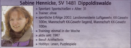 | Landesmeisterin mit dem Luftgewehr wurde Sabine Hennicke |   |