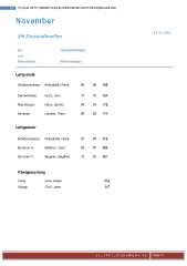 10 Chronik HTTP://WWW.SCHUETZENVEREIN-DIPPOLDISWALDE.DE/ November 15.11.2014 VM Druckluftwaffen Ort: Vereinsschießstand Zeit: Schießleiter: René Kollodziski Luftpistole Schützenklasse: Kollodziski, René 89 96 185 Damenklasse: Groß, Jana 79 75 154 Altersklasse: Gens, Gerald 84 89 173 Senioren: Leistner, Peter 86 88 174 Luftgewehr Schützenklasse: Kollodziski, René 87 85 172 Senioren A: Böttcher, Gerd 88 95 183 Senioren C: Wagner, Siegfried 79 82 161 Königswertung König Gens, Gerald 10,8 Königin Groß, Jana 9,7 s v _1481 _di pps @ gm x .de Seite 10