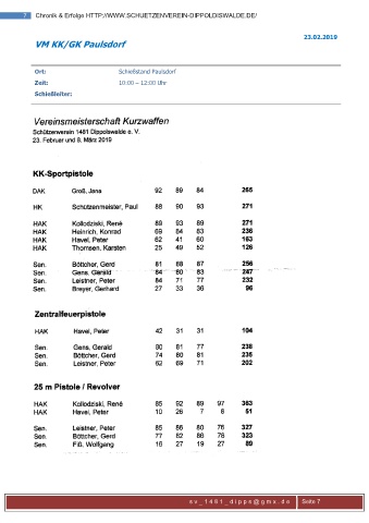 7 Chronik & Erfolge HTTP://WWW.SCHUETZENVEREIN-DIPPOLDISWALDE.DE/ 23.02.2019 1B0BVM KK/GK Paulsdorf Ort: Schießstand Paulsdorf Zeit: 10:00 – 12:00 Uhr Schießleiter: sv_1481 _dipps@gmx .de Seite 7