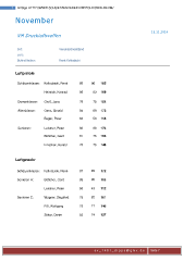 7 Erfolge HTTP://WWW.SCHUETZENVEREIN-DIPPOLDISWALDE.DE/ November 15.11.2014 VM Druckluftwaffen Ort: Vereinsschießstand Zeit: Schießleiter: René Kollodziski Luftpistole Schützenklasse: Kollodziski, René 89 96 185 Heinrich, Konrad 86 83 169 Damenklasse: Groß, Jana 79 75 154 Altersklasse: Gens, Gerald 84 89 173 Beger, Peter 60 58 118 Senioren: Leistner, Peter 86 88 174 Böttcher, Gerd 81 75 156 Irmscher, Harald 70 76 146 Luftgewehr Schützenklasse: Kollodziski, René 87 85 172 Senioren A: Böttcher, Gerd 88 95 183 Leistner, Peter 69 43 112 Senioren C: Wagner, Siegfried 79 82 161 Fiß, Wolfgang 75 71 146 Stikar, Dieter 63 74 137 s v _1481 _di pps @ gm x .de Seite 7